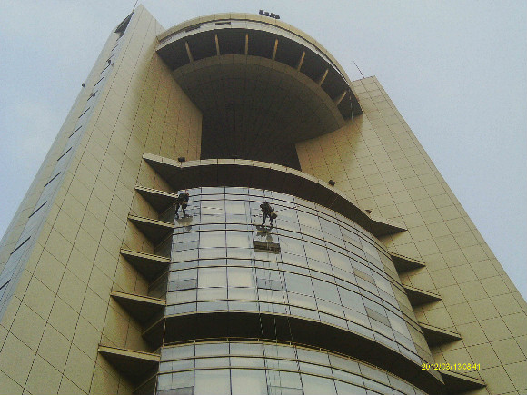 高層外墻清潔、高層玻璃幕清潔、高層外墻粉刷、高空外墻廣告安裝。因為高層外墻存在著危險性和復雜性, 所以這項工作是有著相當程度的科學性和專業性。